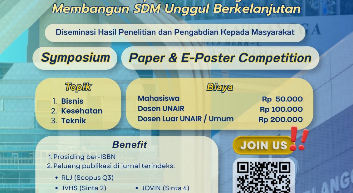 Bagi masyarakat akademik yang ingin berpartisipasi, pihak panitia telah membuka pendaftaran dengan skema biaya yang kompetitif. Peserta kategori mahasiswa dikenakan biaya sebesar Rp50.000, sementara untuk dosen internal UNAIR sebesar Rp100.000, dan peserta umum sebesar Rp200.000. Perlu menjadi perhatian bagi calon peserta bahwa batas akhir pengumpulan abstrak akan ditutup pada tanggal 15 Mei 2026.